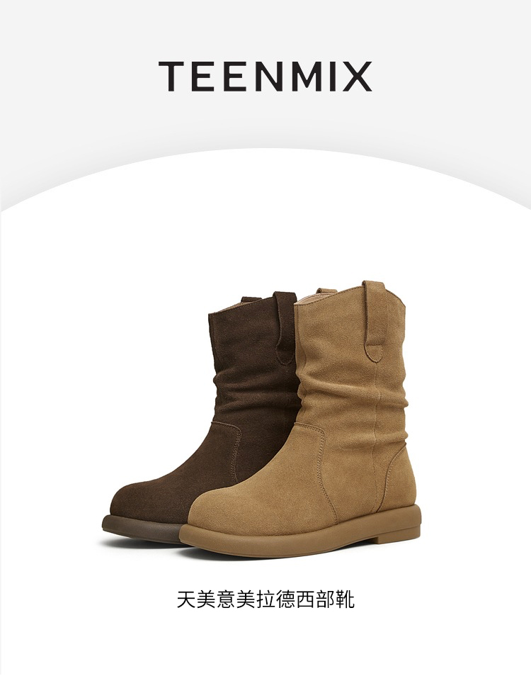 | 帮面材质:牛剖层革 | 配跟:无 | 靴筒口围:32.5CM | 上市时间:2025年冬季 | 鞋类流行款式:西部靴 |
