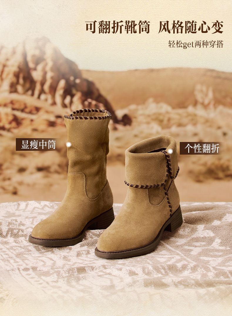 | 靴筒口围:35CM | 配跟:无 | 上市时间:2025年冬季 | 鞋类流行款式:西部靴 | 鞋头款式:圆头 |