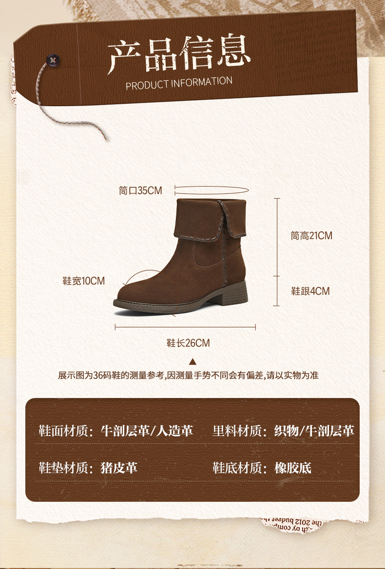 | 靴筒口围:35CM | 配跟:无 | 上市时间:2025年冬季 | 鞋类流行款式:西部靴 | 鞋头款式:圆头 |