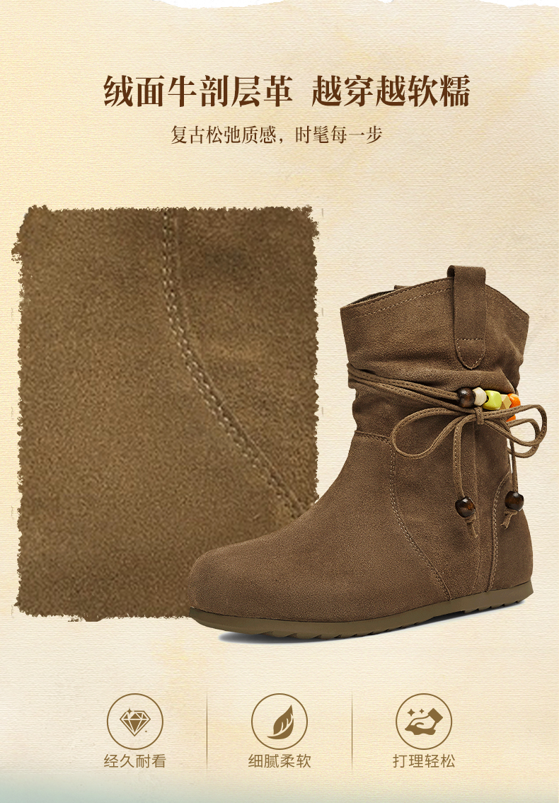 | 鞋底材质:橡胶底 | 靴筒内里材质:人造革织物面料 | 内增高:2CM | 鞋面材质:织物牛剖层革 | 闭合方式:套脚 |