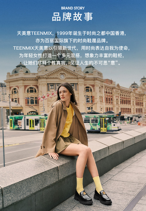 Teenmix(天美意),作为一个都市时尚休闲品牌,倡导“life for fun ,style for teens”即 “人生追求情趣,年轻追求个性”的生活品位,迎合都市年轻人不拘一格,追求mix&match自由组合,创出自我风格的潮流理念。Teenmix向人们展示了流行的转变,强调创意与个性,“teen”代表一群张扬个性、散发活力、追求都市炫彩生活的新新人群;“ mix”即mix&match,代表时尚混搭精神,品牌为年轻人提供恍如贴身订造的时尚潮品,并因应时尚的转变而响应。“随我意,天美意”传达了品牌的主张与个性。