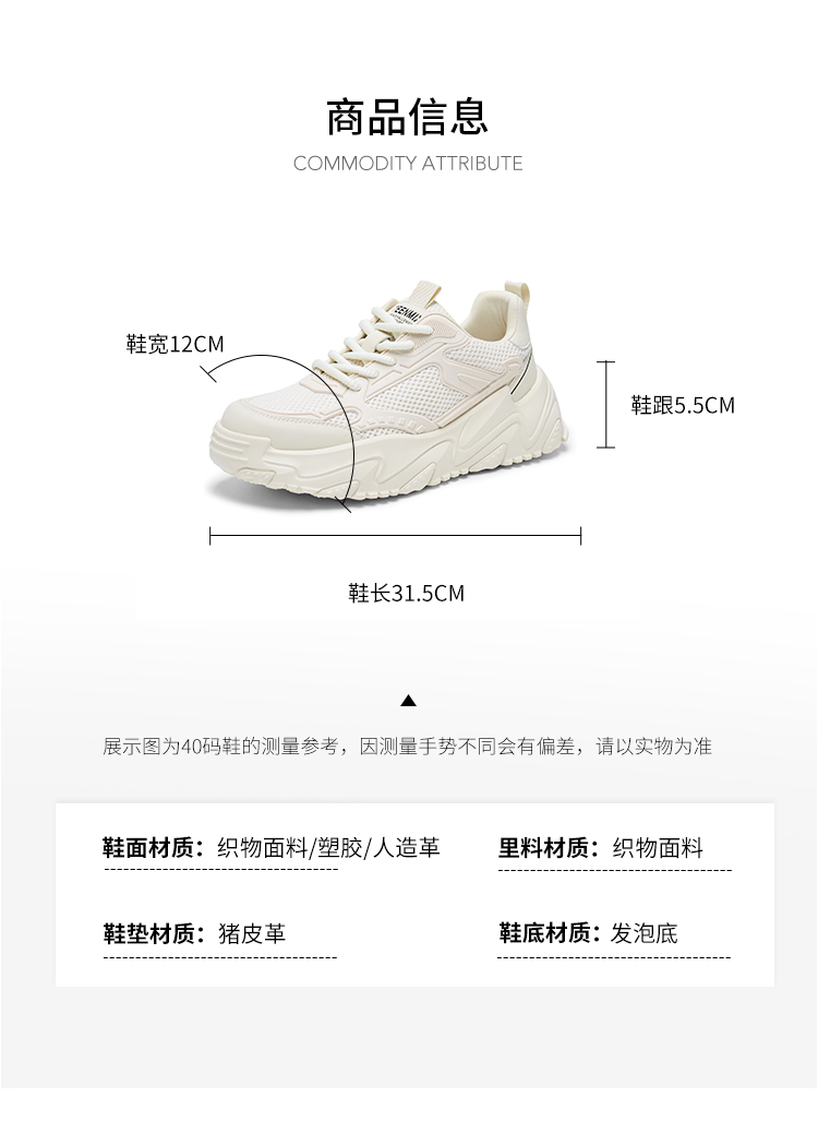 | 开口深度:深口 | 风格分类:老爹鞋 | 上市时间:2025年春季 | 鞋类流行款式:老爹鞋 | 鞋头款式:圆头 |