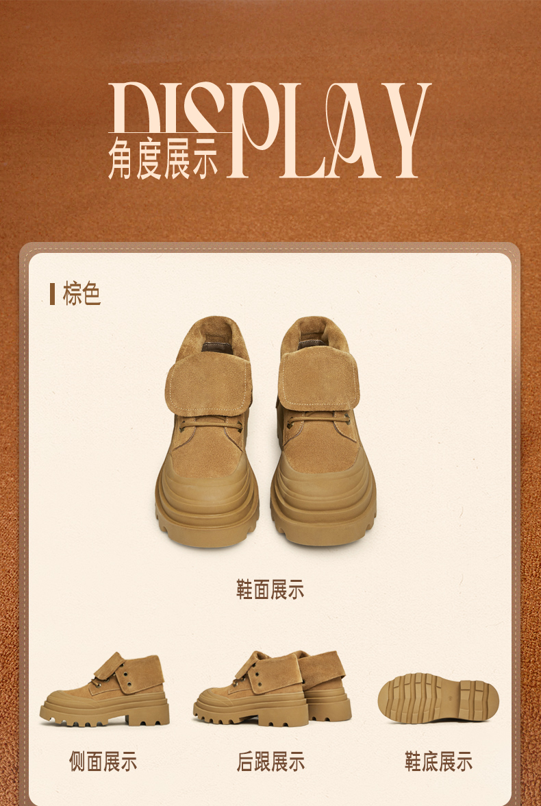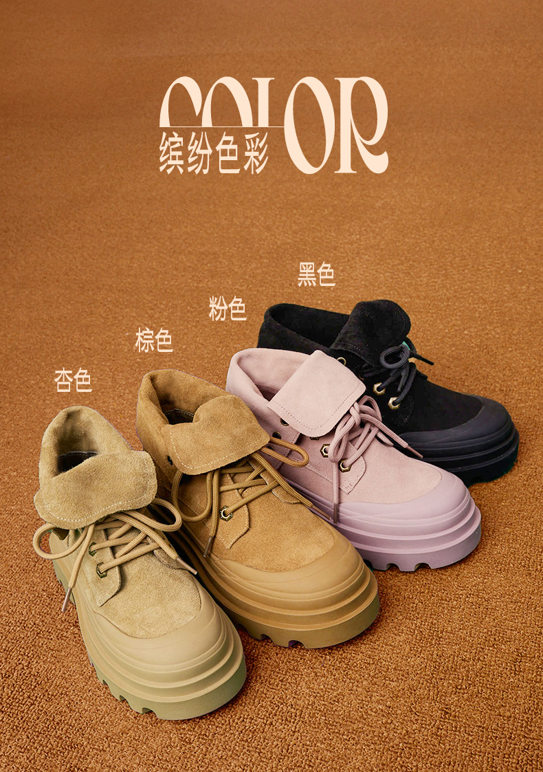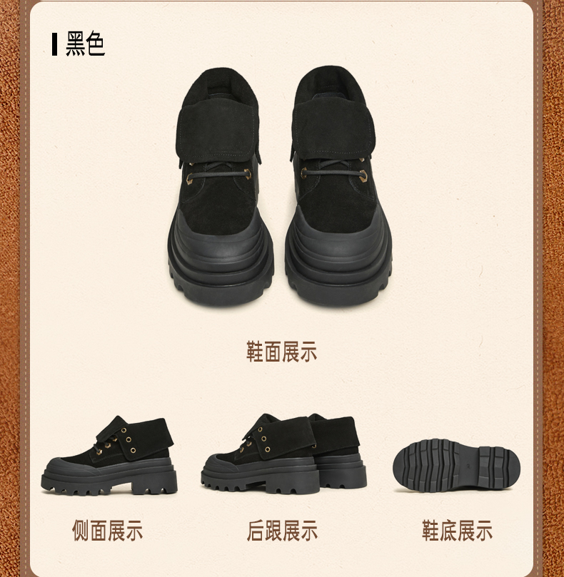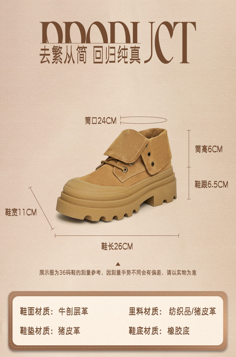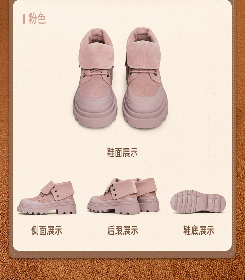 | 款式季节:冬季 | 前掌高度:4CM | 皮质特征:二层皮 | 防水台高度:无 |