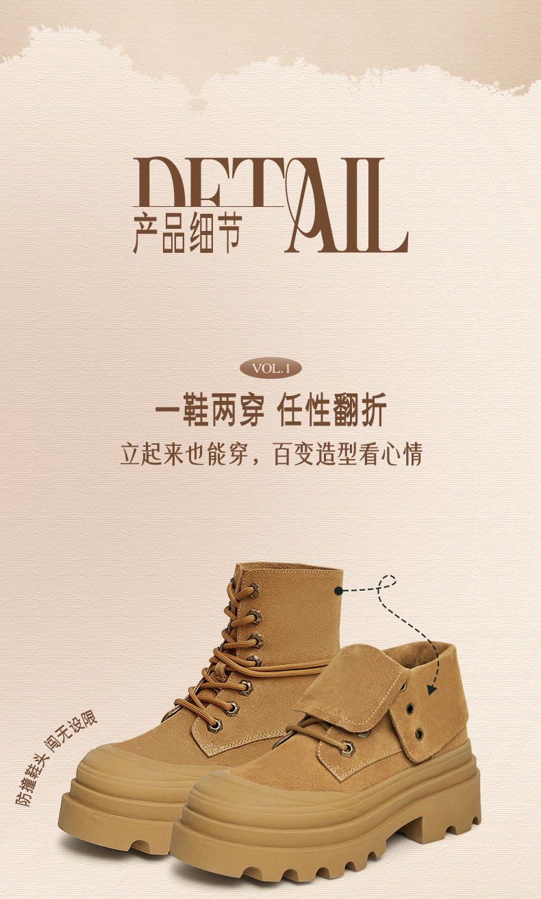 | 帮面材质:牛剖层革 | 配跟:无 | 靴筒口围:24CM | 上市时间:2023年冬季 | 鞋类流行款式:工装靴 |