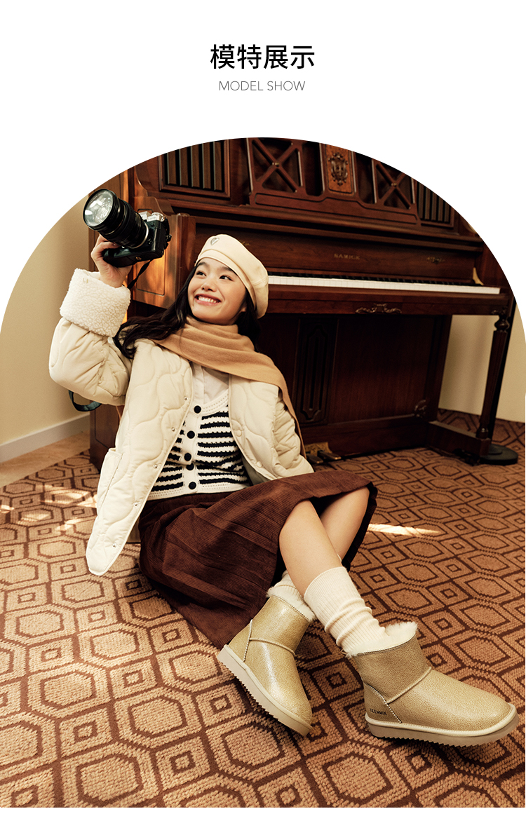 | 帮面材质:牛剖层革 | 配跟:无 | 靴筒口围:33CM | 上市时间:2022年冬季 | 鞋类流行款式:雪地靴 |