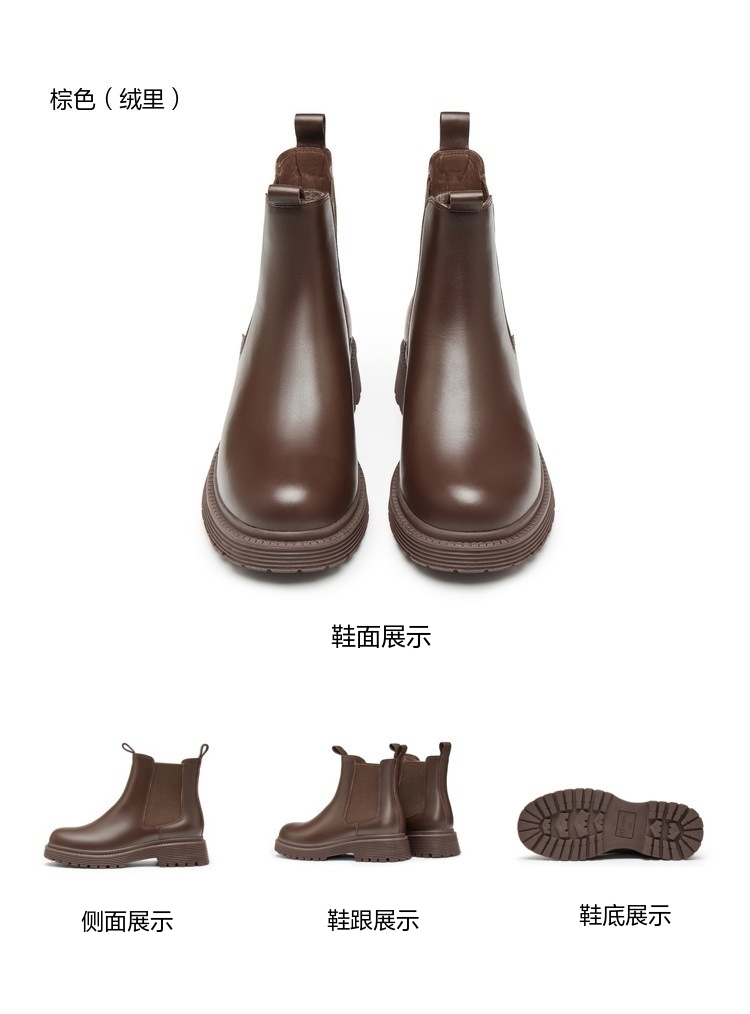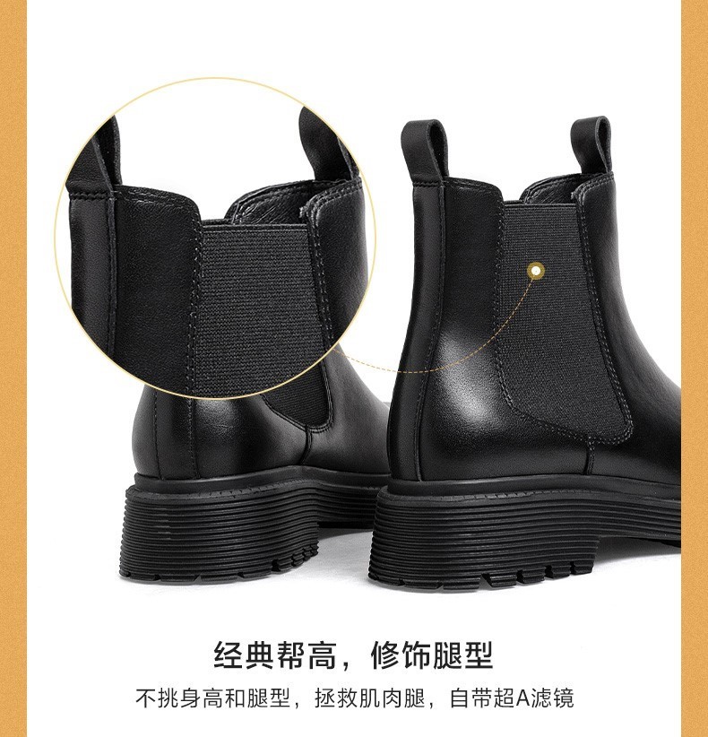 | 帮面材质:牛二层皮 | 配跟:无 | 靴筒口围:26CM | 上市时间:2024年冬季 | 鞋类流行款式:切尔西靴 |