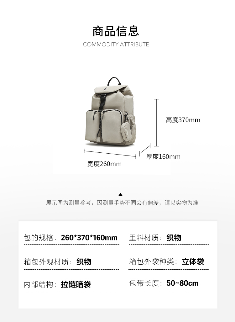 | 防水功能:不防水 | 上市时间:2025年秋季 | 适用对象:青年 | 肩带样式:双根 | 带长:50~80cm |