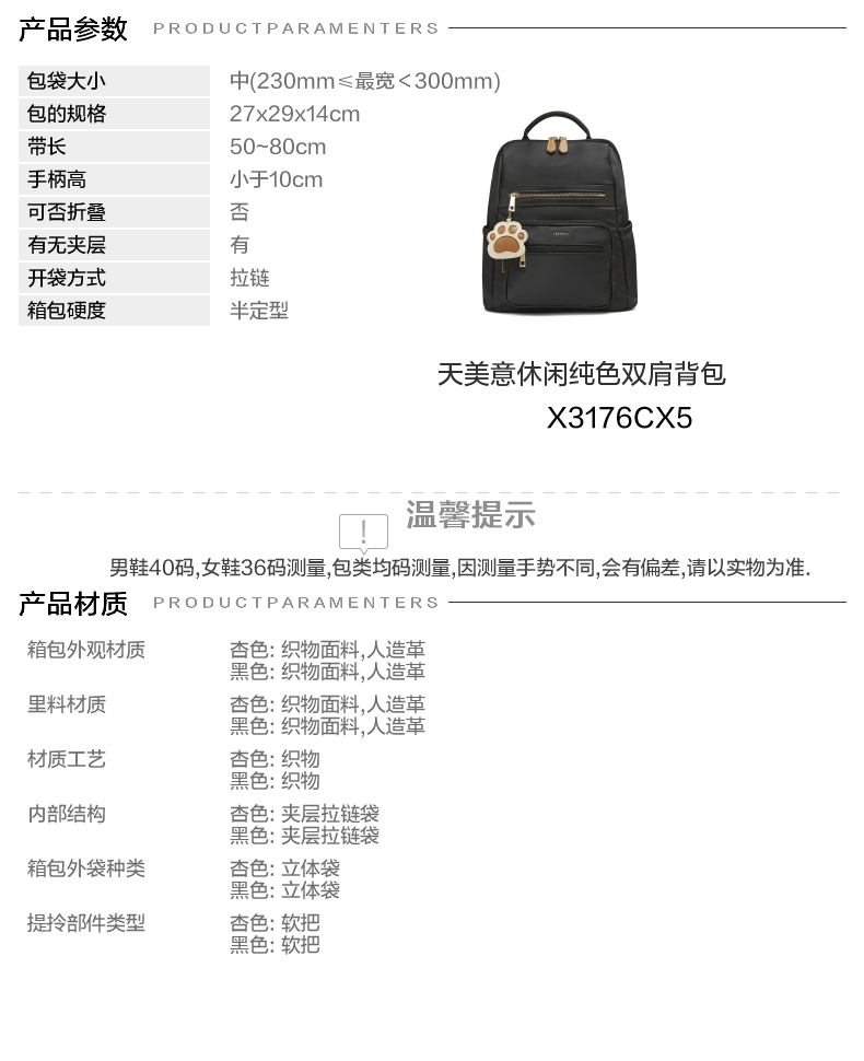 | 防水功能:不防水 | 上市时间:2025年秋季 | 适用对象:青年 | 肩带样式:双根 | 带长:50~80cm |