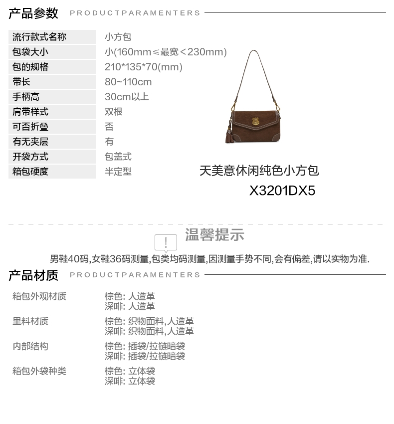 | 款式季节:冬季 | 材质工艺:PU | 皮质特征:织物/人造革 | 箱包硬度:半定型 | 箱包外观材质:人造革 |