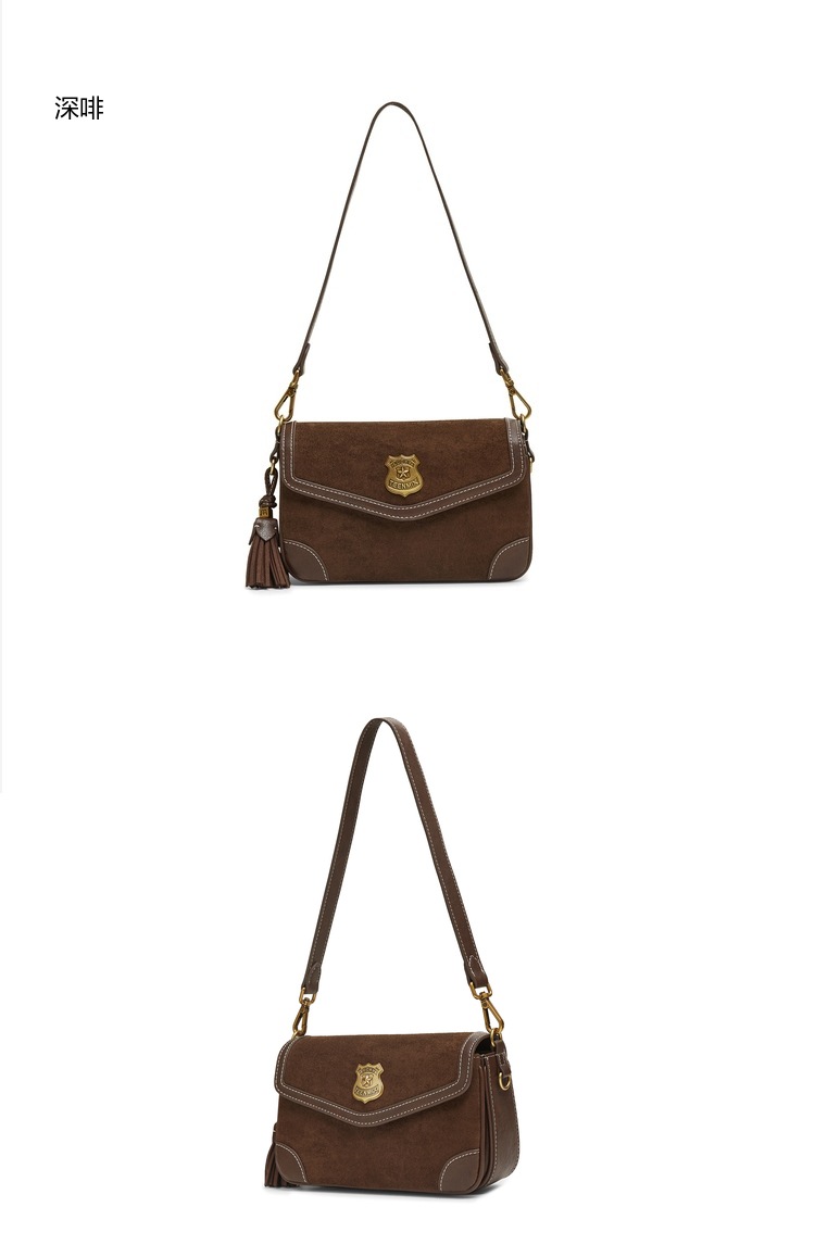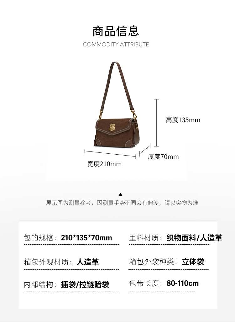 | 包的规格:21*13.5*7cm | 内部结构:插袋/拉链暗袋 | 背带方式:单肩/斜挎 | 风格:休闲 | 色系:棕色 |