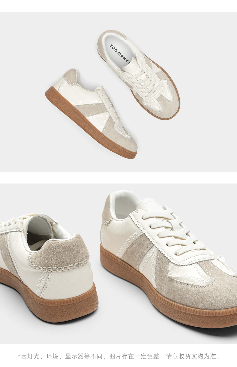 | 闭合方式:前系带 | 风格:时尚休闲 | 色系:米白 | 跟高数值:2.5CM | 配跟:无 |