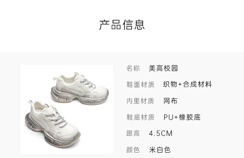 | 风格:时尚休闲 | 色系:白色 | 跟高数值:5CM | 配跟:无 | 性别:女子 |