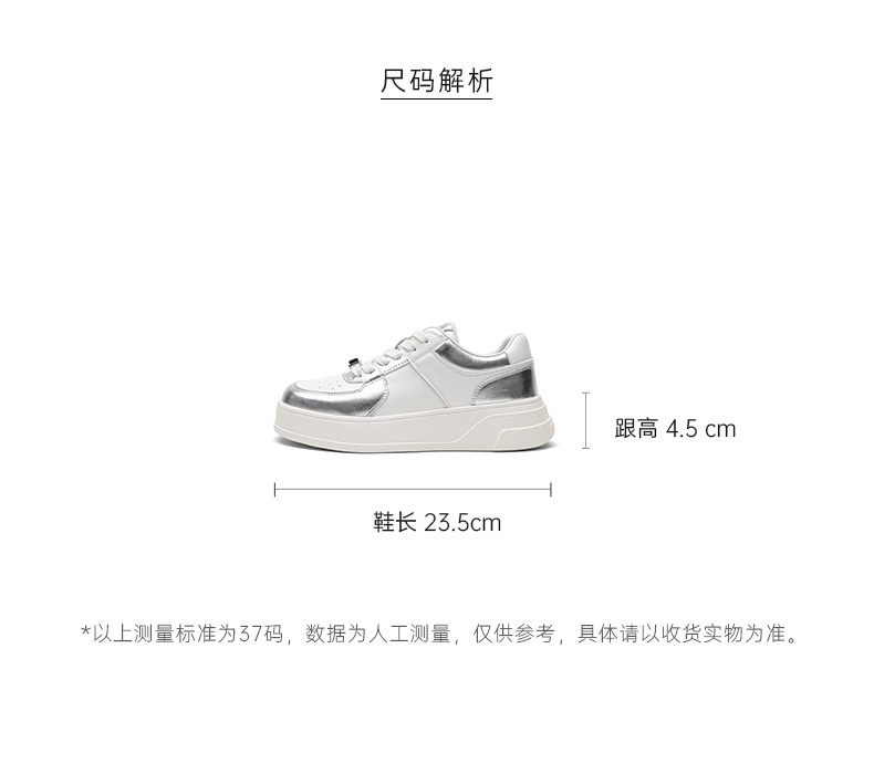 | 鞋面材质:PU | 流行元素:拼色 | 参考鞋长(女):23CM | 参考鞋宽(女):7.5CM | 闭合方式:前系带 |