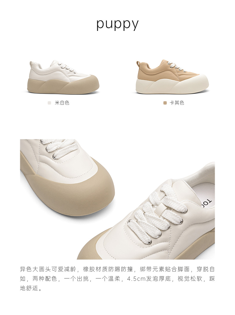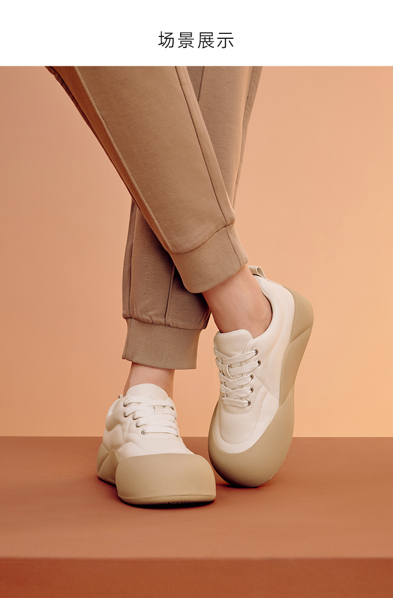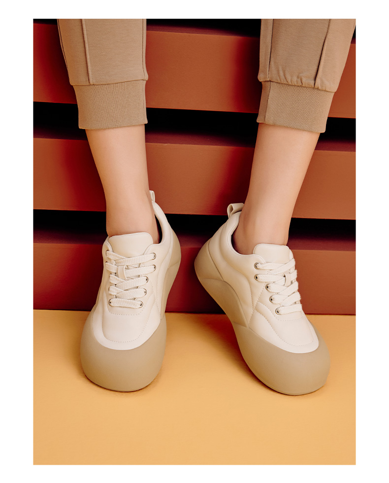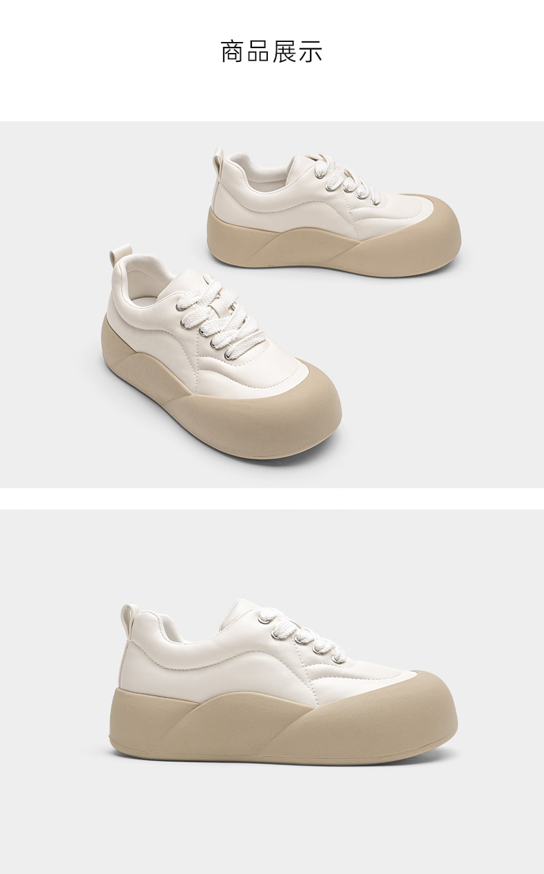 | 鞋帮:低帮 | 鞋头款式:圆头 | 鞋底材质:橡胶底 | 鞋面图案:拼色 | 鞋跟形状:厚底 |
