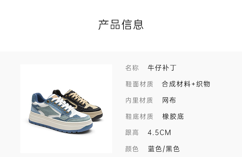 | 鞋帮:低帮 | 鞋头款式:圆头 | 鞋底材质:橡胶底 | 鞋面图案:拼色 | 内增高:无 |