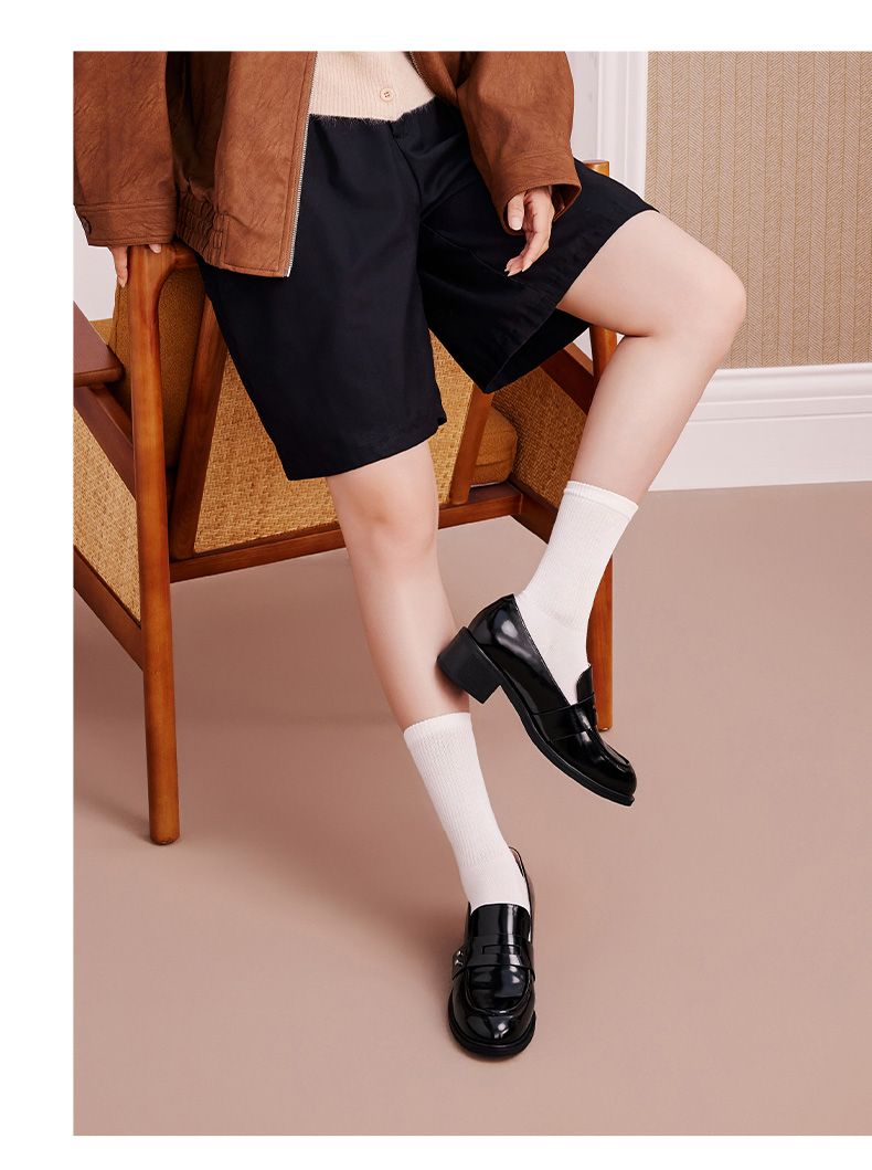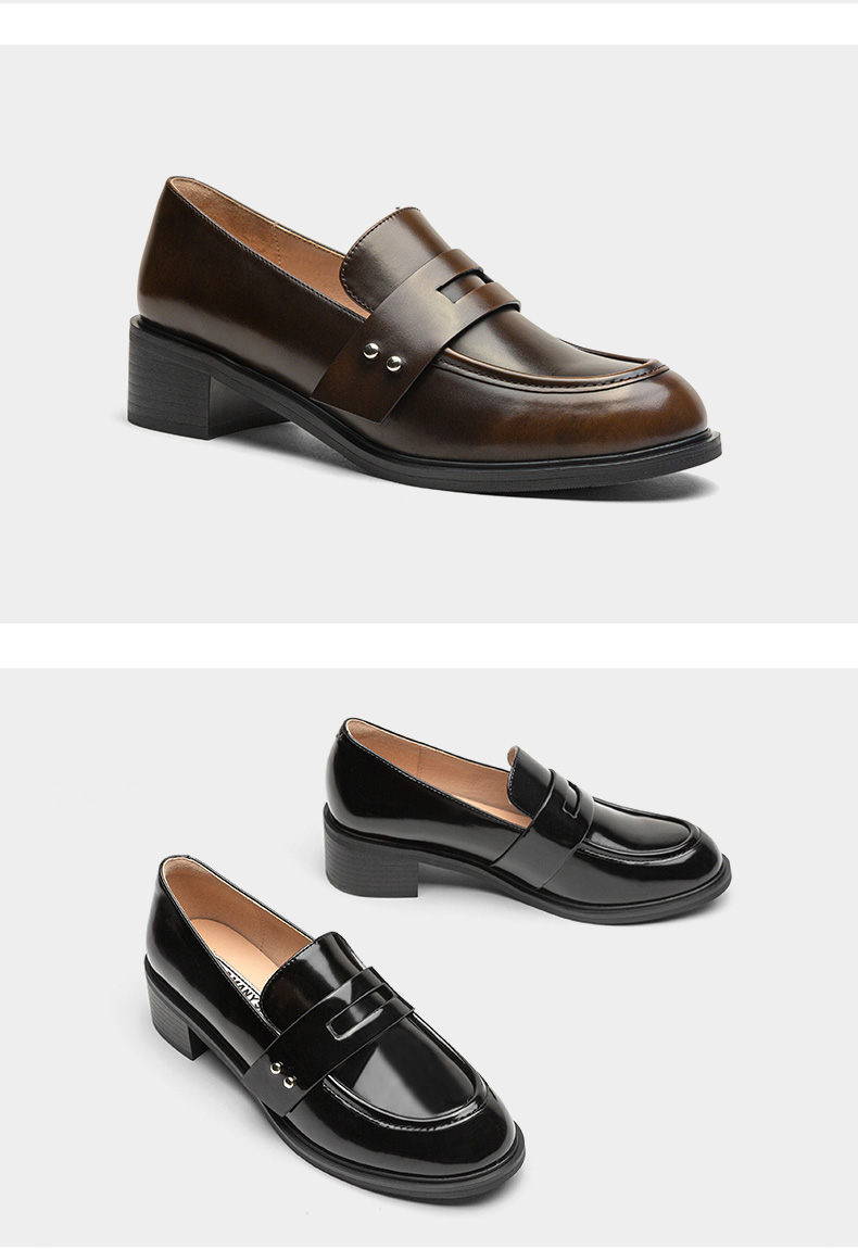 | 鞋帮:低帮 | 鞋头款式:圆头 | 鞋底材质:橡胶底 | 鞋面图案:纯色 | 鞋跟形状:粗跟 |