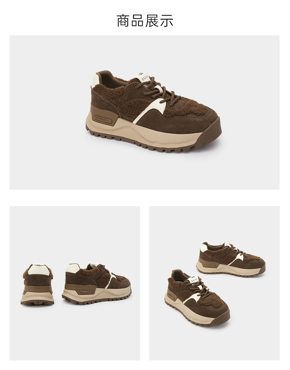 | 色系:棕色 | 性别:女子 | 里料材质:网布 | 鞋跟形状:厚底 | 上市时间:2024年秋季 |