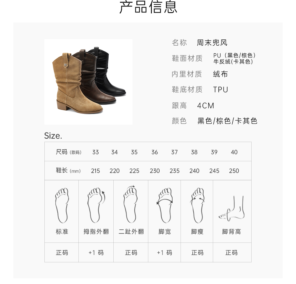 | 色系:咖啡色 | 性别:女子 | 风格分类:烟筒靴 | 款式季节:冬季 | 闭合方式:套筒 |