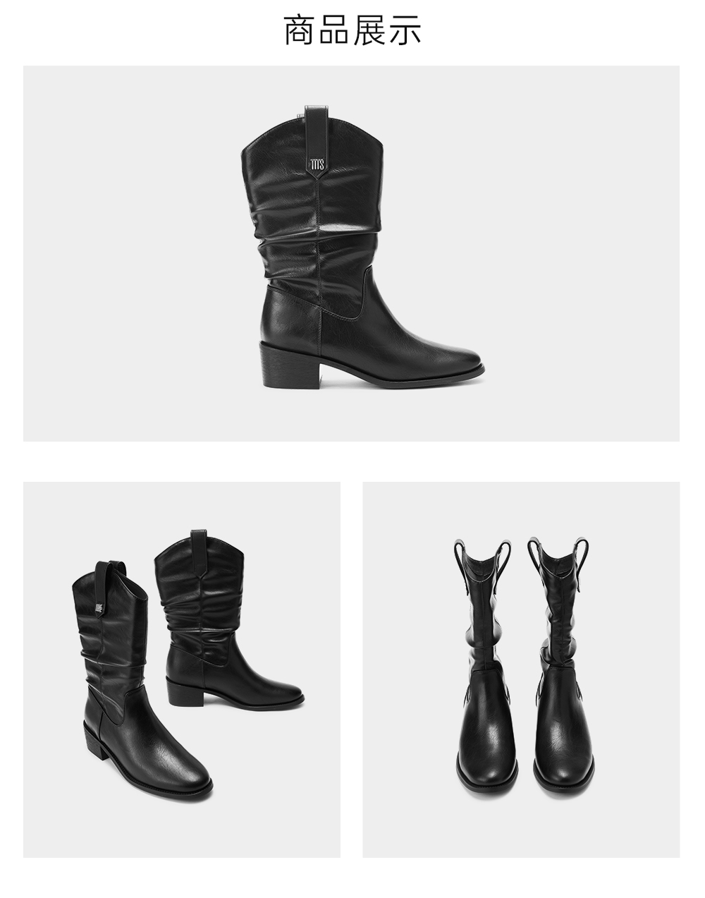 | 色系:黑色 | 性别:女子 | 风格分类:烟筒靴 | 款式季节:冬季 | 闭合方式:套筒 |