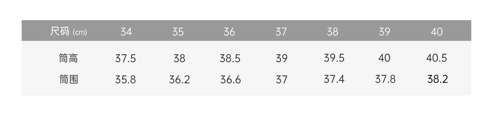 | 建议尺码 | 33 | 34 | 35 | 36 | 37 | 38 | 39 | 40 |