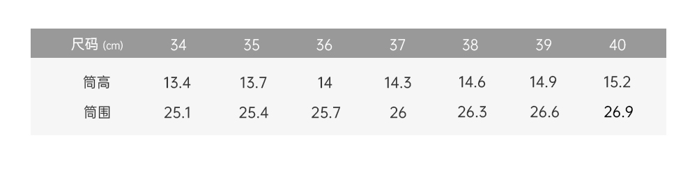 | 建议尺码 | 33 | 34 | 35 | 36 | 37 | 38 | 39 | 40 |