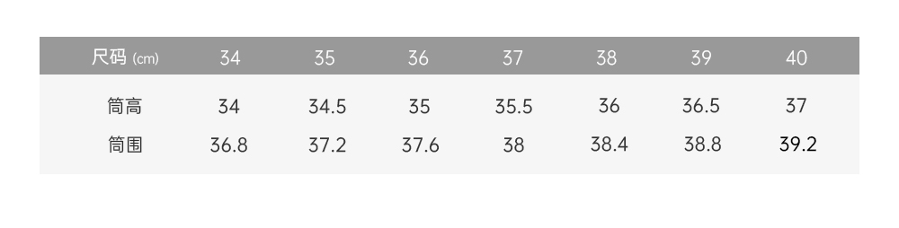 | 建议尺码 | 33 | 34 | 35 | 36 | 37 | 38 | 39 | 40 |