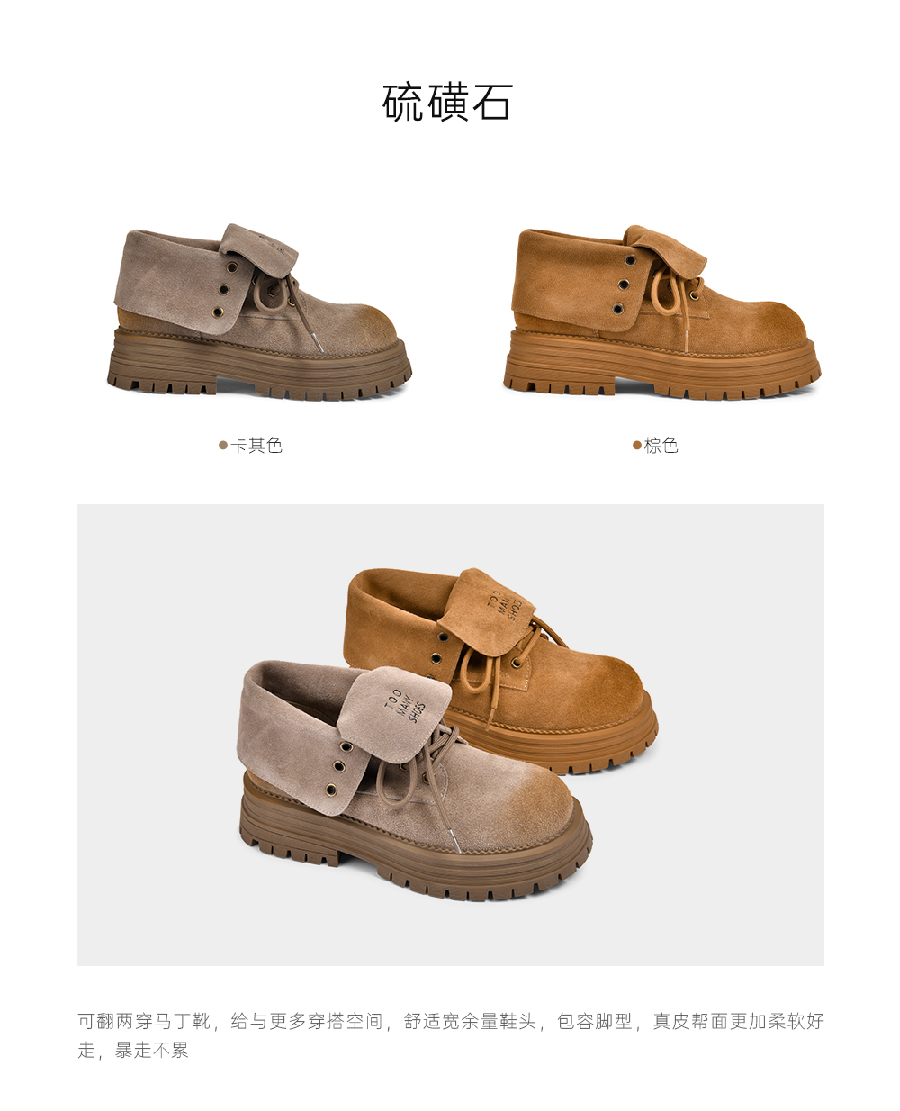 | 鞋头款式:圆头 | 鞋底材质:橡胶底 | 靴筒内里材质:织物 | 鞋跟形状:厚底 | 鞋面材质:牛剖层革 |