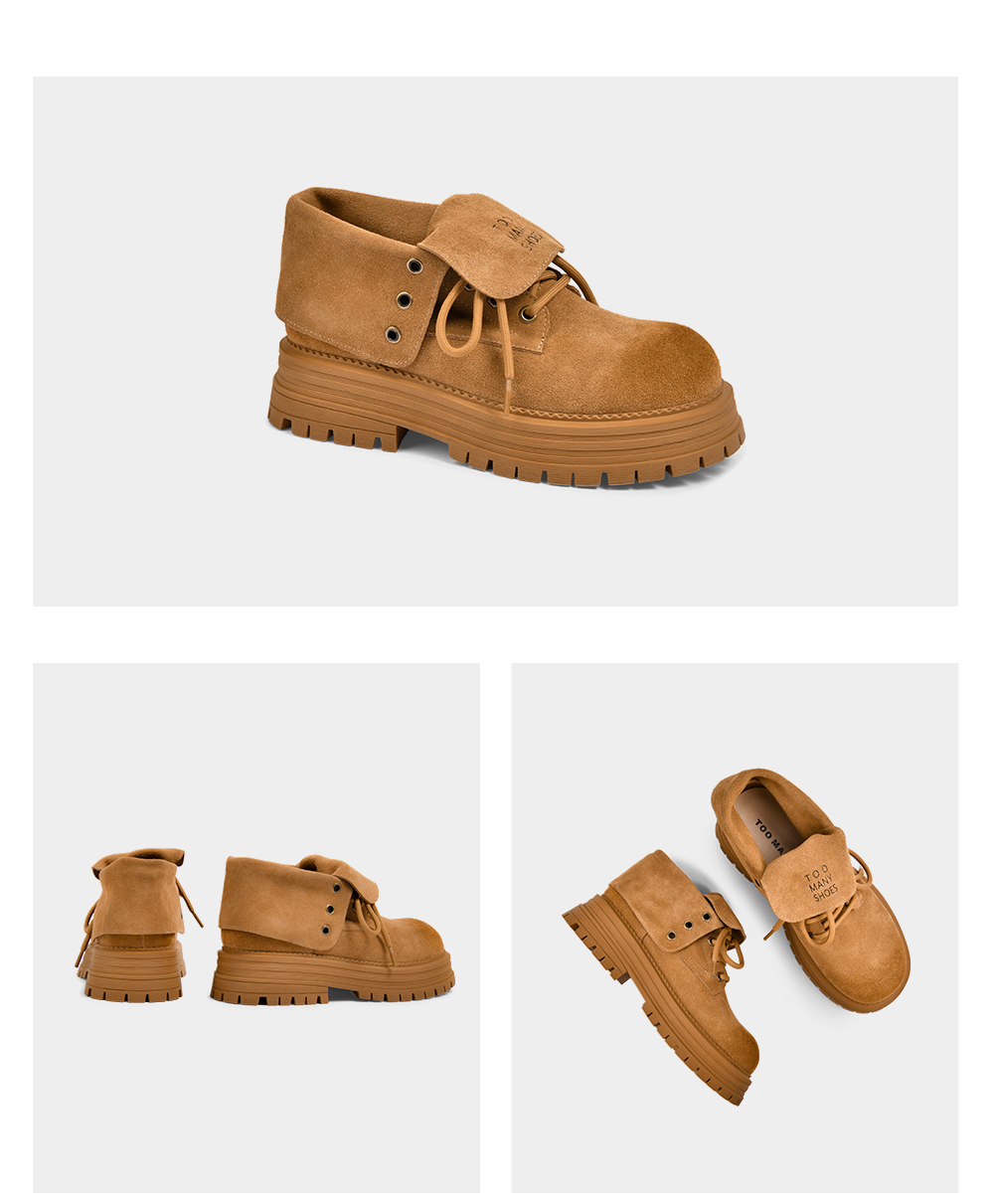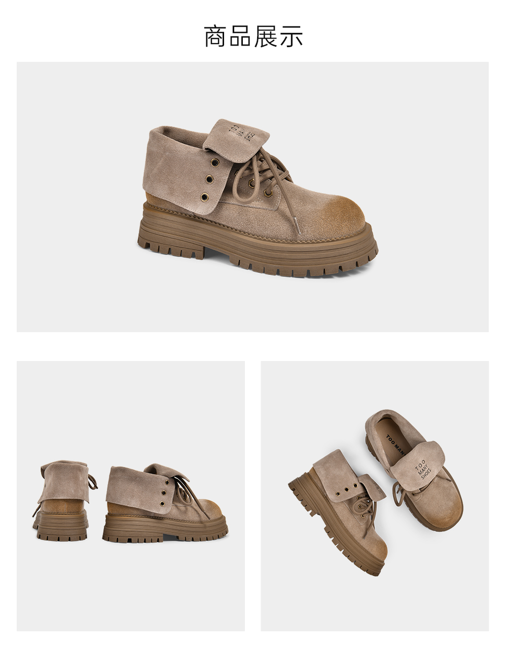 | 鞋面内里材质:织物 | 跟高数值:5CM | 色系:卡其 | 配跟:无 | 帮面材质:牛剖层革 |