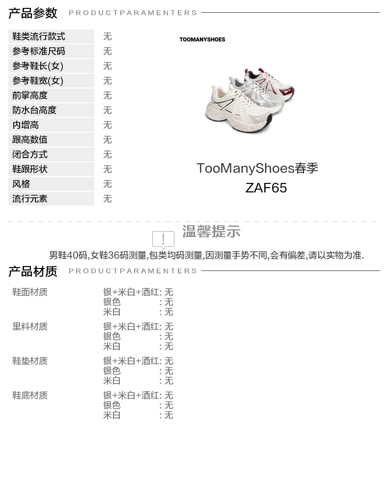 • Toomanyshoes女鞋2025新款解构星河复古银色老爹鞋厚底增高运动鞋