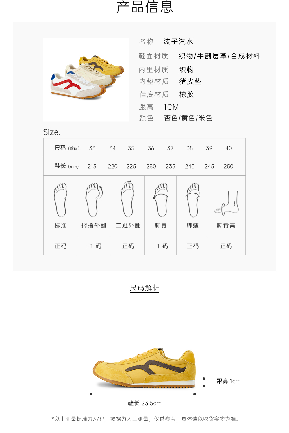 | 色系:黄色 | 鞋头款式:圆头 | 性别:女子 | 里料材质:织物 | 鞋面材质:织物面料PU猪剖层革 |