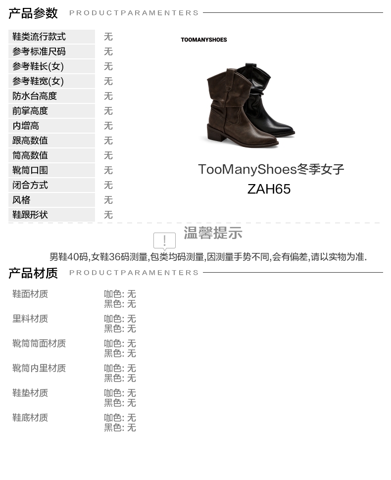 色系:黑色 款式季节:冬季 闭合方式:套筒 性别:女子
