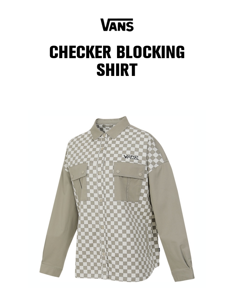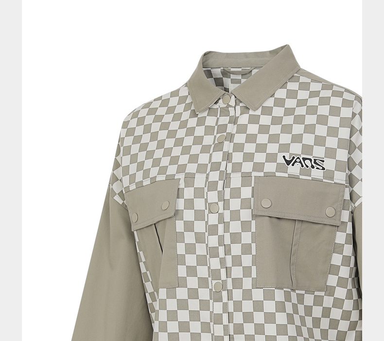 VANS范斯2025女子CHECKER BLOCKING SHIRT针织长袖衬衫VN000NFAEC6